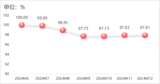 2024年12月,花出产品价钱指数维稳运转,指数值为97。91点,较11月下降0。02个百分点。具体运转环境如下图所示!